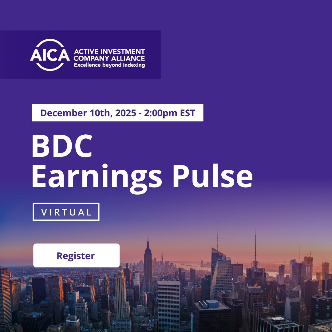The Active Investment Company Alliance (“AICA”) is a trade association committed to educating and engaging investment professionals and investors about closed-end management companies: listed and non-listed closed-end funds, business development companies, interval funds and tender offer funds. The alliance supports transparency and, therefore, does not allow any agent, employee or representative to personally solicit any investment or accept any monies to be invested in a particular fund or security. Investments and solicitations for investment should be made directly with your financial advisor, broker or a trusted individual and not with this association. Please contact AICA (contact@aicalliance.org OR call (888-440-9694) if any person or organization solicits funds from you while representing that they are an agent, employee or representative of AICA.